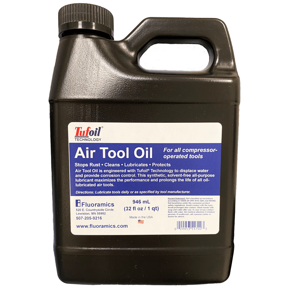 Air Tool Oil is a critical lubrication tool when working with compressor-driven tools that is engineered with Fluoramics’ proprietary Tufoil Technology. It cleans, lubricates, and protects against corrosion.